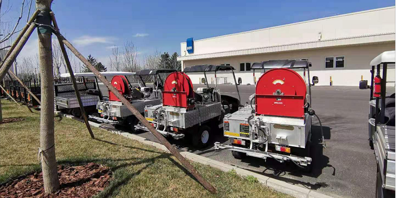 還有南京珍珠泉景區(qū),訂購的定制貨斗巡邏車。北京環(huán)球影城度假村簽訂的電動噴霧打藥車,為園區(qū)開園前的草坪綠化養(yǎng)護使用。還有即將交貨的蘇州金雞湖高爾夫球場L20電動高爾夫球車?;葜葙沐悸糜味燃俅逵嗁彽匿囯姵毓ぷ鬈?。