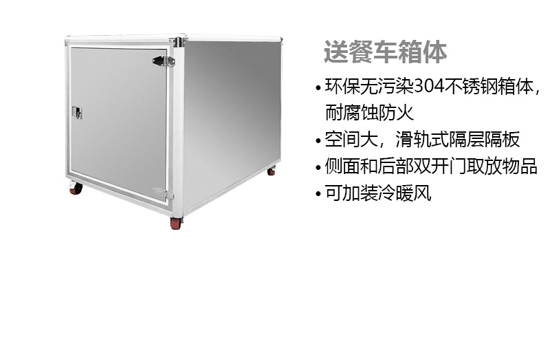 餐車箱體特點(diǎn):多種箱體材料可以選擇,保溫隔熱的加厚PP板、環(huán)保無污染的304不銹鋼材。箱體具有耐腐蝕防火特點(diǎn)??臻g大,滑軌式隔層隔板。 側(cè)面和后部雙 開門方便用戶 取放物品。也可根據(jù)需要可 加裝冷暖風(fēng)。