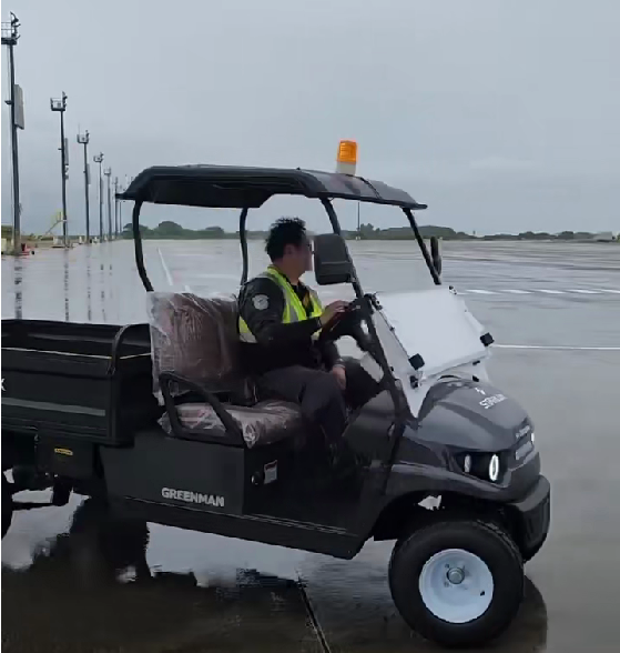 電動工作車,在機場碼頭的風(fēng)雨中作業(yè),能滿足通過拖掛鉤連接所需要的載重貨物的需求,能幫助客戶在工作中提高效率,展示整車動力強勁的特點。