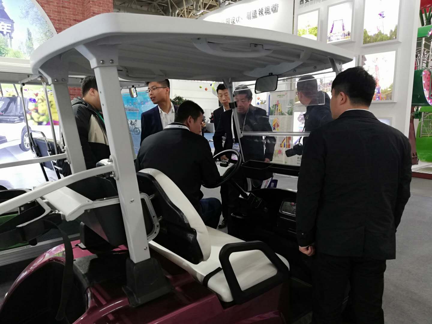 展會(huì)上,我公司電動(dòng)車(chē)輛吸引了眾多參觀者的目光,來(lái)自景區(qū),游樂(lè)場(chǎng)等各行各業(yè)有合作意向的專(zhuān)業(yè)客戶(hù)和我公司工作人員進(jìn)行詳細(xì)地咨詢(xún)與洽談。